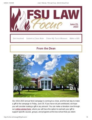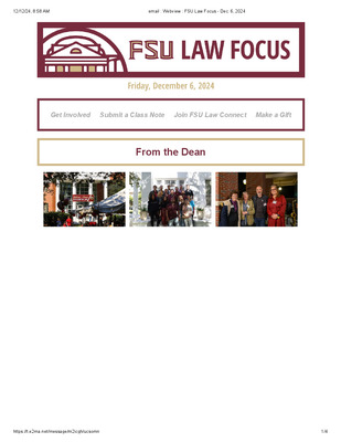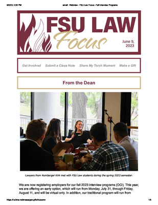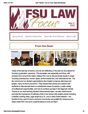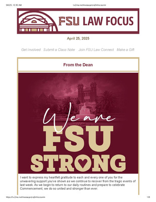 From the Dean: FSU Strong; FSU Law in the News; Share Your FSU Law Journey; Book Talks in Governance Ethics & Technology; PILC Toy Drive; Student Give Back Campaign