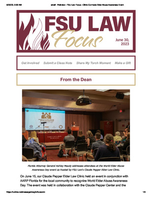 From the Dean: Alumni honored as 50-Year Members of The Florida Bar; FSU Law Alumni News (Judge Thomas Palermo); Claude Pepper Elder Law Clinic
