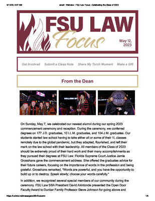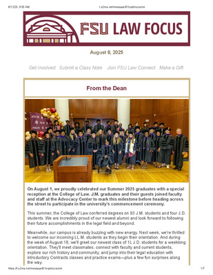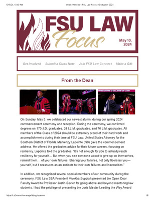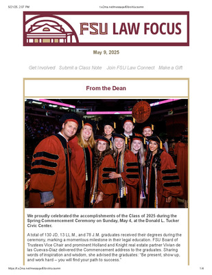 From the Dean: Class of 2025 Spring Commencement Ceremony; Frontiers in Law and Technology; FSU Law Student News (2024-25 Legislative Fellows)